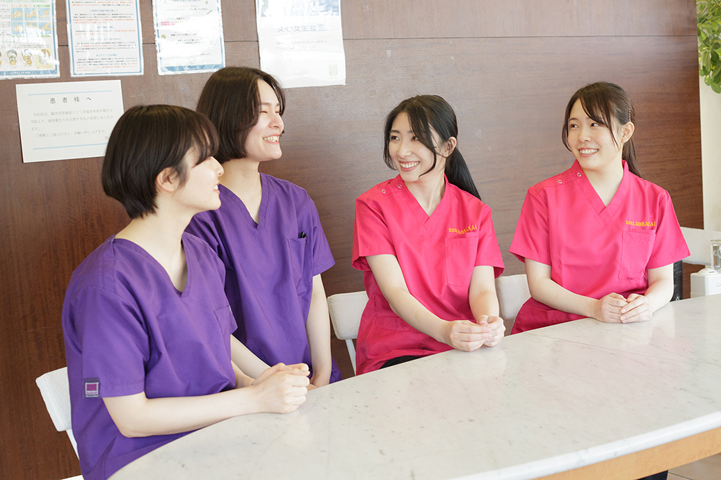 あと、私が大切にしているのは勤めていただいた方には、長く勤めてほしいということです。できれば、結婚しても、出産しても、仕事を続けて欲しいですし、復職できるようになっております。ですから、多くの方ができるだけ長く勤めていただける歯科医院を作って行きたいと考えております。