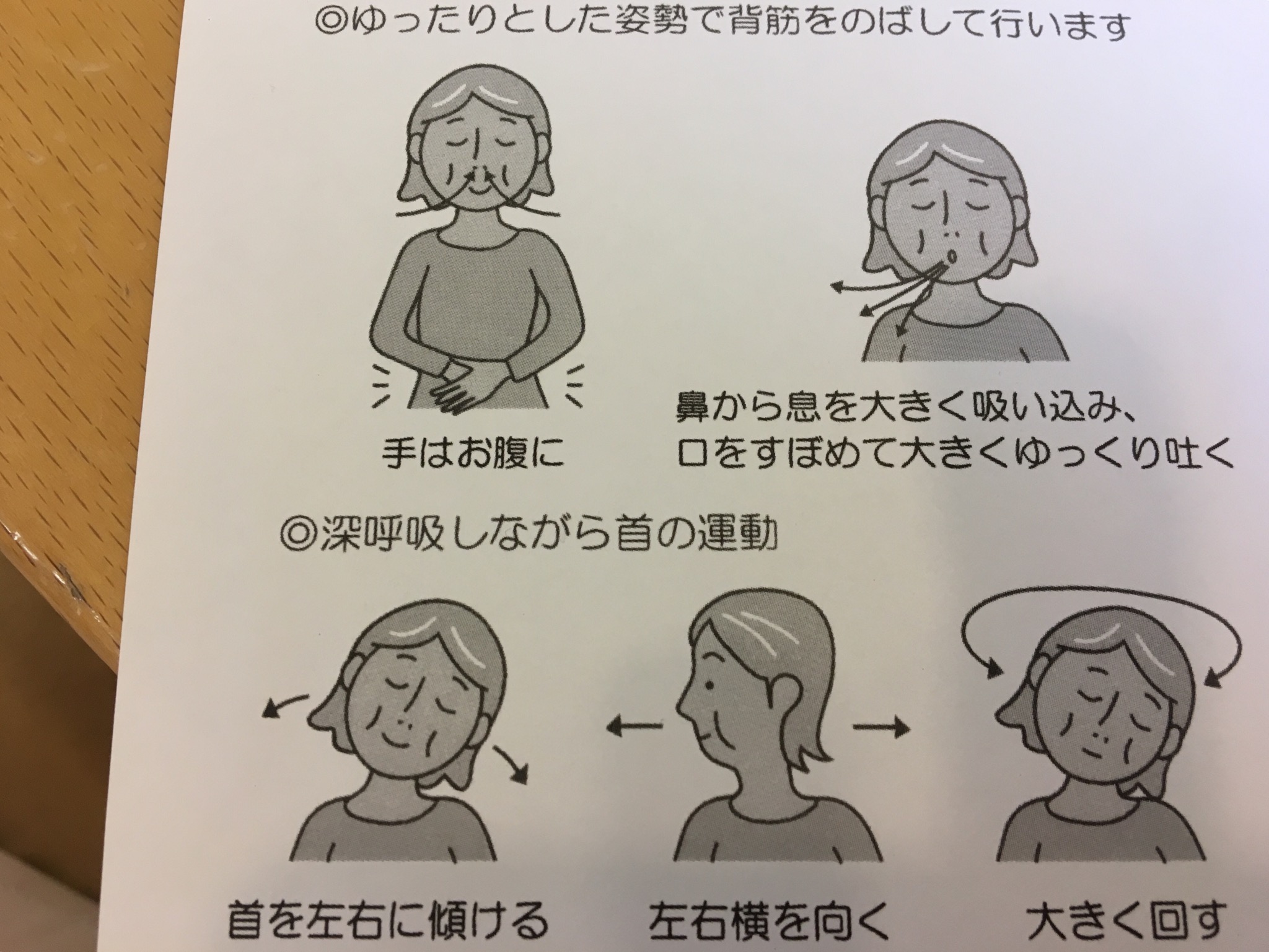 今までは、お顔の周りでしたが今度は上半身の運動です下の画像のように呼吸しながらやることに効果がえられますので空いている時間にやってみて下さい‼︎