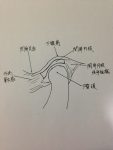 下顎頭は口を閉じている間は下顎窩におさまり、口を開けるときは下顎窩の前方に位置する関節結節と呼ばれる出っ張りに沿って回転しながら前下方に滑走します。指で触って動く出っ張りが下顎頭です。口を開けることによって前下方に滑走しているのが分かると思います。
