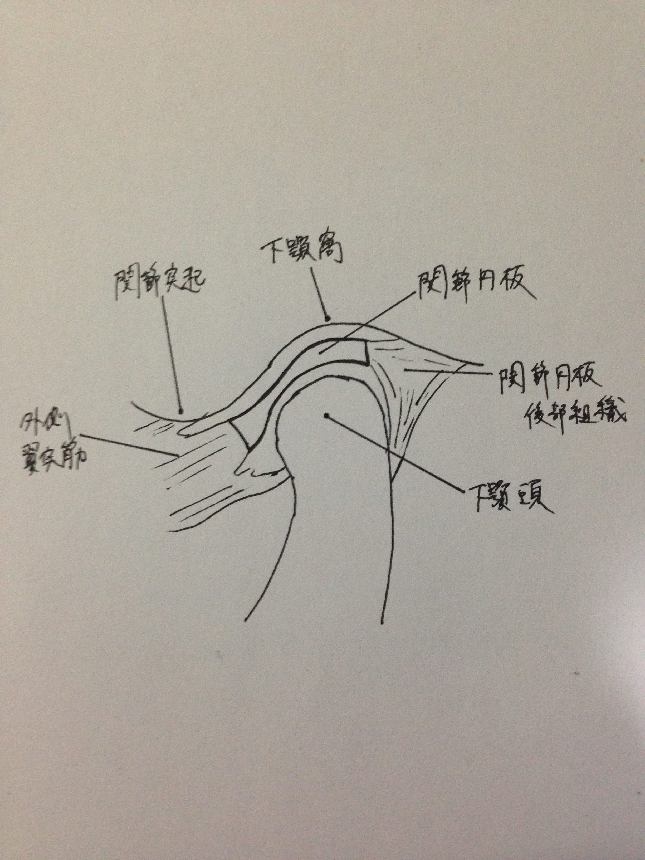 顎関節を構成するのは下顎頭、下顎窩だけではありません。他に、関節円板、関節包、靭帯などの骨以外の組織ももちろん構成要素としてあります。