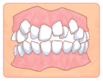 顎が小さくて永久歯が重なって生えてきてしまった場合です。口を大きくする治療を5~9歳で行う場合があります。