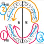 つい前歯から、奥歯から、と磨きやすい場所から磨き始めて色々動かしてしまいがちですが、磨く順番を決めて動かしましょう。