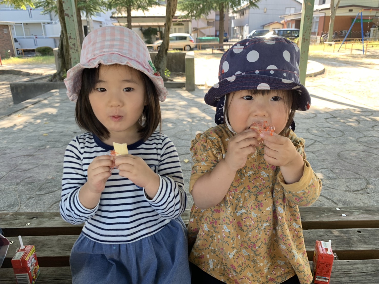少し遠い公園まで歩いていき、まずはおやつをパクり!