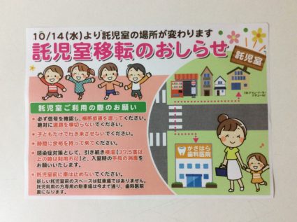 ✳︎託児室前に車は止めないでください。新しい託児室前のスペースは駐車場ではありません。託児利用のかた専用の駐車場は今まで通り、歯科医院裏になります。
