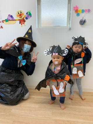 当院では、患者さんのお子さんの他に、スタッフのお子さんも託児室でお預かりしています。先月はハロウィンがあったので、みんなで仮装してハロウィンパーティを行いました🎃子どもたちはお面とマントでコウモリ🦇になり、保育士は魔女🧙♀️に変身です!