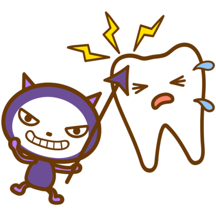 むし歯とは、むし歯の原因となる細菌(ミュータンス菌など)が作る酸により、歯が溶かされてしまう病気です。むし歯の原因菌は、糖質をエネルギー源として、歯を溶かす酸を作り出します。磨き残しのためプラークが蓄積されていたり、砂糖の摂取量・摂取回数が多かったりすると、細菌の活動が活発となり、むし歯になってしまいます。