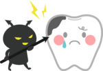 むし歯の原因には、「歯の質」「糖質(砂糖など)」「細菌(ミュータンス菌)」の3つの要素があります。これらの3つの要素が重なると、時間の経過とともに、むし歯発生につながります。砂糖を取りすぎないようにするほか、効果的な方法で歯磨きをしてフッ素でむし歯を予防しましょう。
