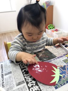 イチゴは絵の具を使って指でちょんちょんっとしたら完成!!!とっても美味しそうなイチゴが出来ました!!!
