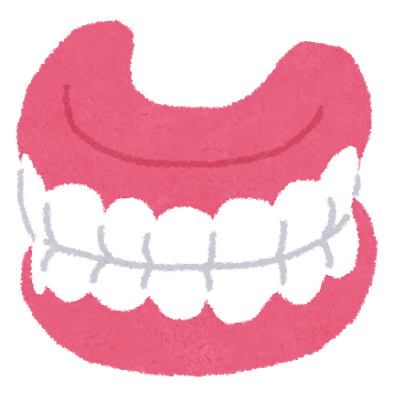 本来天然歯があったところで、人工歯が並べられている。レジン歯や陶歯、金属歯などが使われている。