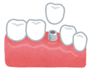 インプラント体を手術により埋め込み、インプラント体表面と骨の結合(オッセオインテグレーション)を期待し6週間から6ヶ月間の治療期間を待ち、その上に人工歯冠・上部構造をスクリュー・セメント、磁石などで装着する一連の治療をインプラント治療と呼ぶ。