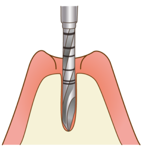 骨の量が足りない場合は骨補填剤を使い、再生療法で増やします。骨の状態に応じて行います。