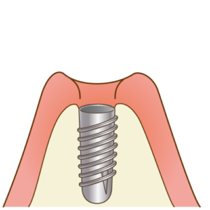 ④結合を確認後、歯ぐきを切開し、インプラント体の頭を出す