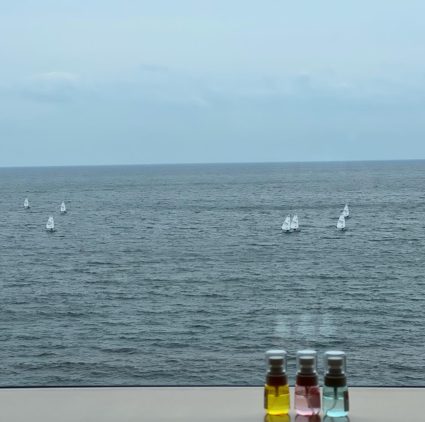 ホテルの窓から見える景色が、ザ・海〜という感じで、ゆったりとしてとても心地よい時間を過ごすことができました。みなさんにも、素敵な景色をお裾分けします!