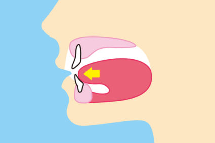 また、飲み込みの際に舌はどこにいるでしょうか?飲み込み時に舌が上顎の裏にくっついているのが正しい舌の位置です。お子様の舌は飲み込みの際に、前方の歯にくっついていないでしょうか?人は一日に平均600回、飲み込みの動作をすると言われています。舌が上顎の裏にくっついている場合は、飲み込みの度に上顎に力がかかるので上顎の成長を促すことができますが、前方に位置している場合は歯を外側に押す方向に力がかかるため、不正咬合の原因となってしまいます。