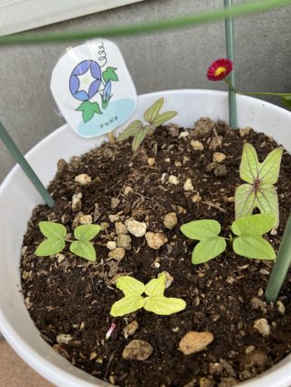 さて託児室の玄関前に朝顔の種を蒔きました💕