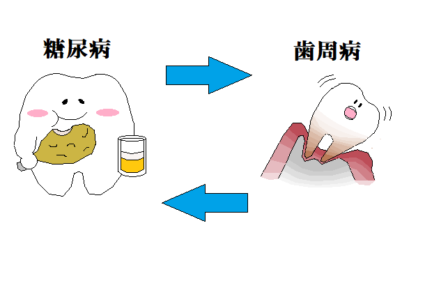 しかし、糖尿病が歯周病を引き起こすだけではなく、歯周病が糖尿病に悪影響を与えるという事が研究でわかっています。歯周病と糖尿病はお互いに悪影響を与えながら悪化しているのですね。