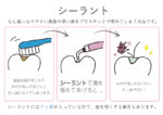シーラントは虫歯の予防治療です。奥歯の溝の部分を、レジンを始めとしたプラスチック樹脂で埋めることで、奥歯の溝に汚れが着くのを防ぎます。