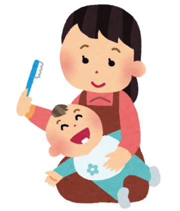 さて今回は、子どもの歯が生え始める時期と歯磨きのポイントについて、お話していきたいと思います。歯が生え始める時期には個人差がありますが、だいたい生後6ヶ月~生後9ヶ月頃が一般的です。多くの子の場合は、まず下の前歯が2本生えてきて、次に上の前歯が2本生えてきます。歯が生える頃には歯茎がむずがゆく成って、よだれが増えたり、機嫌が悪くなったりします。歯茎のむずがゆさを紛らわせるために、おもちゃなど歯ごたえのあるものを噛みたがるので、赤ちゃん用の歯がためなどを用意しておくと良いでしょう。
