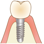歯が失われた場所に、歯の根に代わる人工歯根を埋めておき、しっかり結合した段階で人工の歯を被せ、天然の歯が生えていた頃と同様の機能性と審美性を回復させる治療法です。