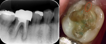 今回のケースは銀歯を外してみると歯にクラックという亀裂があり、その隙間から細菌の感染が起こったことが原因であると考えられます。