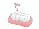 補綴物と歯の状況をみて、接着するセメントを決めます。歯に対して親和性のあるものや、接着力の強いものなどいろいろありますが、一番適切だと思われるセメントを選んでから接着していきます。水分が入ると脱離しやすくなるので、エアー等で乾燥させてから合着します。補綴物にセメントを付けて接着したら、しっかり噛んでもらって浮き上がりがないように硬化を待ちます。セメントが固まったら糸ようじ等を使用し、余剰セメントを除去します。