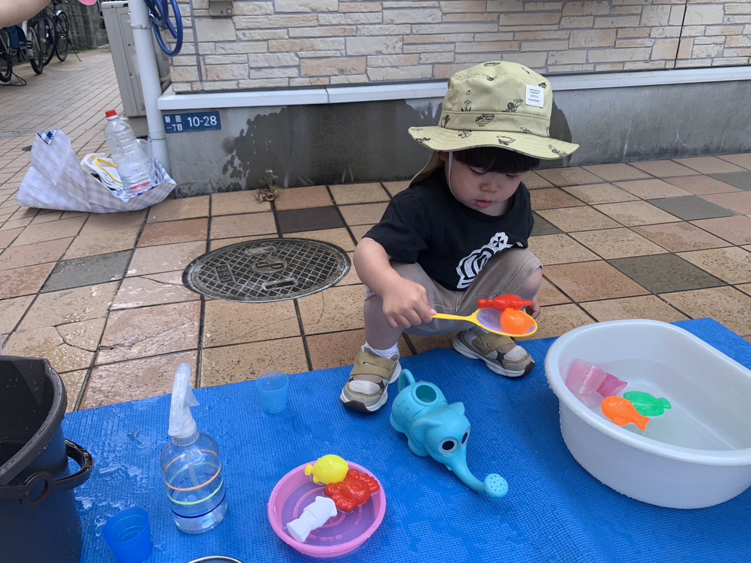 お魚釣りやじょうろでのシャワー遊び🚿「しゃわしゃわ〜」「つめたい!」「きもちいい」と夢中になって遊んでいました😊お片付け〜の声がけに残念そうな表情🥲