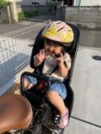 初めのうちは、乗るのが嫌がってましたが乗って慣れてきたら自分から自転車の方に行き、ヘルメットを被るようになりました!!