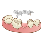 歯を失った部分の両隣の歯を支えとし、3本連なった冠です。失った部分をダミーの歯、両隣の歯を土台にするため、歯を大きく削る必要があります💧これはブリッジの最大のデメリットと言えます😱両隣の歯が神経が生きている歯の場合ですと、後々しみたり痛みが出る原因になるため、健康な歯を削るのはもったいないですよね😰