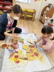 大きなクリスマスケーキを作りました。クレヨンや絵の具で色塗を楽しみました🎂🎄