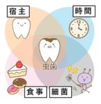 むし歯が出来るには4つのすべてが揃う必要があるため、これらの条件が揃わないようにすることがむし歯予防につながります。