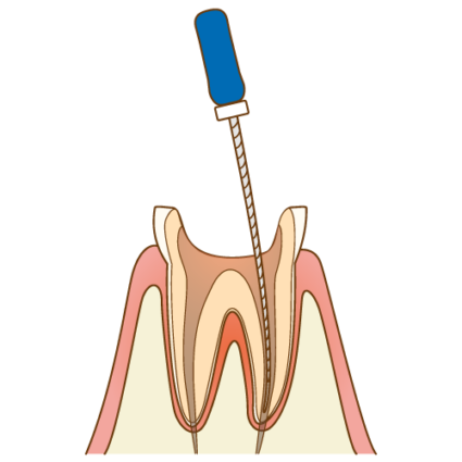 歯の根の中(根管)を掃除し、消毒します。根管内がきれいになるまで一、二週間に一回程度行います。