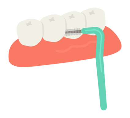 使い方としては、優しく歯と歯の間に挿入し左右の歯面にしっかり沿わせ、前後に4.5回以上動かします。出来たら頬側はもちろん、内側からも通してあげましょう。奥歯は苦手意識を持つことが多いと思いますが、あまりお口を大きくあけ過ぎると頬の粘膜が邪魔をして難しいのでお口を軽くあけて鏡を見ながらゆっくりと行いましょう。