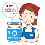 歯科専売品のガムには、甘味料としてキシリトールが100%配合されており、キシリトール以外の甘味料は含まれていません。