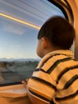 新幹線に乗るのが好きな息子は、いつも名残惜しそうに窓を見つめています笑 この日もずっと窓から外を眺めていました🌷