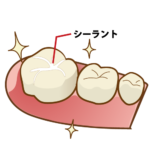 シーラントとは、奥歯の溝を物理的に封鎖したり、シーラント材の中に含まれるフッ化物により再石灰化作用を促進したりするむし歯予防法です。乳歯や生えたての大人の奥歯は虫歯になりやすいと言われています。特に奥歯の溝は歯ブラシでは届きにくいため溝を平にすることでむし歯を予防することが出来ます。