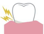 歯茎の位置は年齢とともに下がってきます。それに伴い歯の根っこが露出し象牙質がむき出しの状態になります。象牙質表面に歯ブラシが触れたり、温度変化などの痛みを感じることがあります。しみる症状の持続時間は長くても1分以内で、時間が経てば痛みは徐々に消失していきます。また歯石除去をした場合もお水を出して象牙質に触れるためとてもしみやすいです。