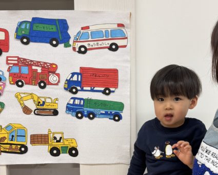 🎵はたらくくるま🎵のペープサートもみんな夢中で観ていました。