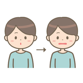 まずは唇を前に突き出し『うー』と大きく発声してもらいます。次に唇を横に引いて『いー』と大きく発声してもらい、これを1セットとし、20回を目標にやることで唇をしっかり閉じる口唇閉鎖機能が改善され、口のまわりの筋肉の動く範囲も広がります。