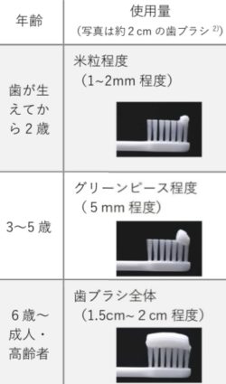 うがいができない2歳頃までは、少量使用なのでうがいの必要はないが、ティッシュなどで拭き取ってもよい