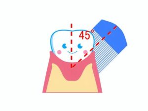歯ブラシの毛先を歯と歯ぐきの境目に45度の角度で当て、小刻みに動かすのが基本です。