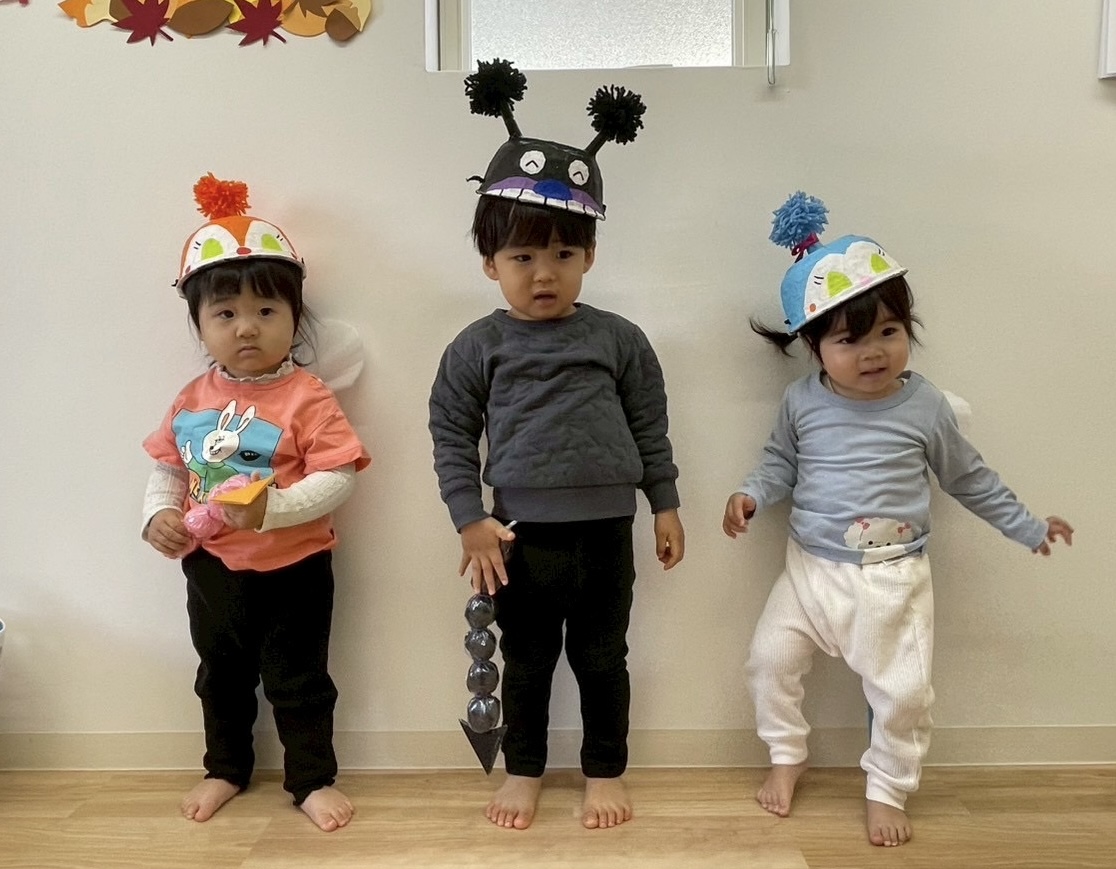 カボチャのおばけの製作をしたり大型絵本でおばけを見たり、子どもたちの間でおばけが大流行りで歌に合わせておばけの動きをしたり面白おかしく過ごしました。まだまだ怖いよりは楽しいという反応が多かったです👻