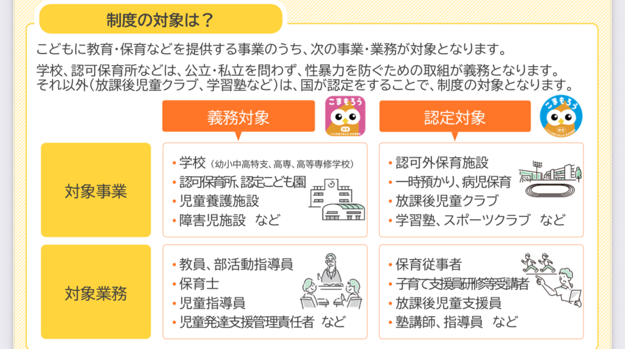 そしてこども家庭庁に認定を受けた場合は法律の対象となりこまもろうマークが制定されました。