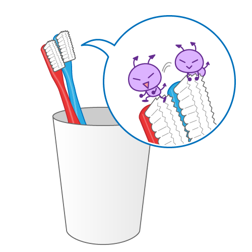 ☆細菌がたまりやすい歯ブラシは1か月に1回を目安に交換する。