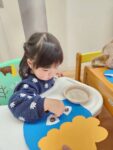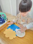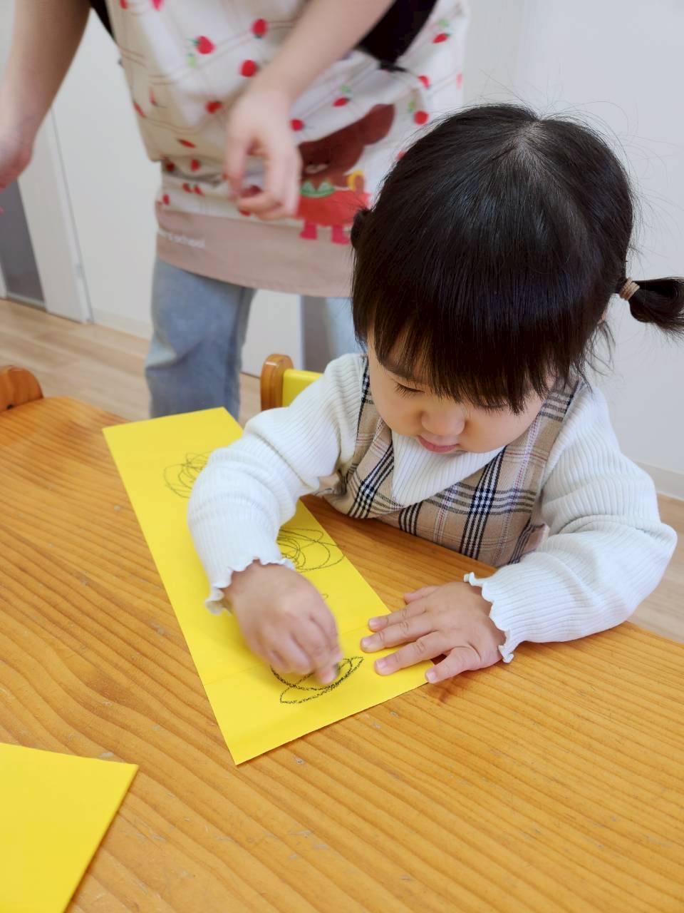 指先でのりをパーツに塗り、好きなところにペタっ!目の位置もちゃんと考えて、貼っているようでした✨