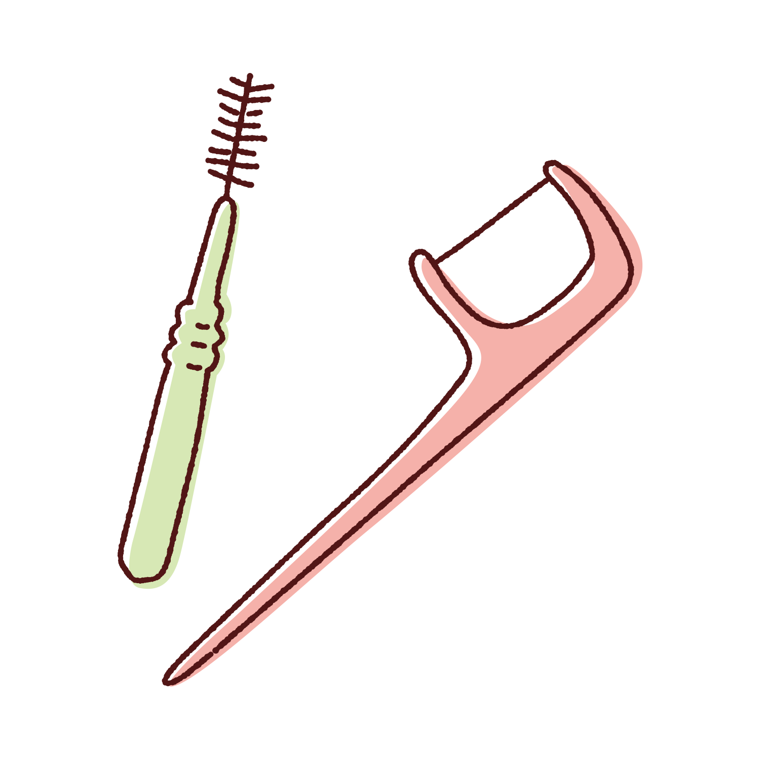 「どちらを使えばいいの?」と迷う方も多いですが、実はお口の状態によって使い分けることが理想です。場所によってフロスと歯間ブラシを併用するケースもあります。