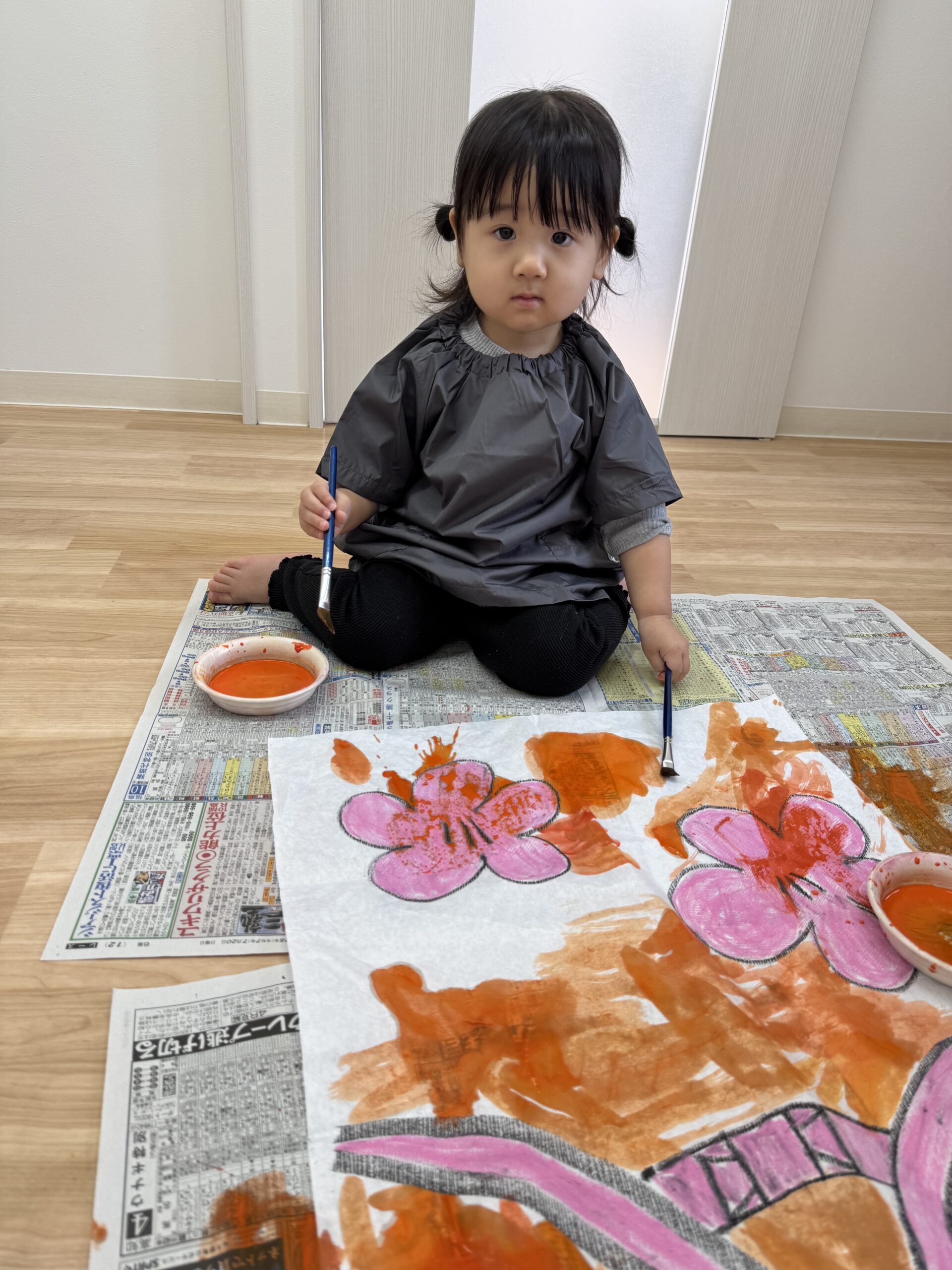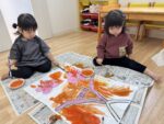 自分たちで絵の具でお雛様の着物を塗る塗り🖌🎨👘