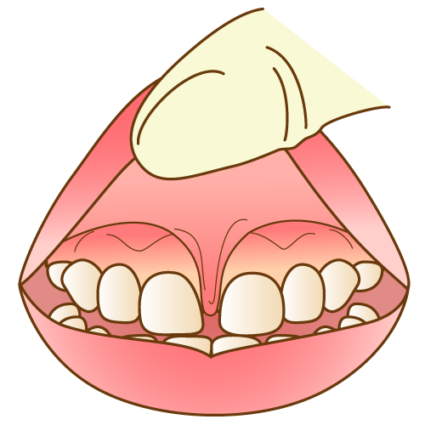 出生直後から生後1歳頃までは歯槽頂の近くに付着していますが、上顎の発育に伴い、歯槽の高径は増大し、上唇小帯は上方に移動していきます。