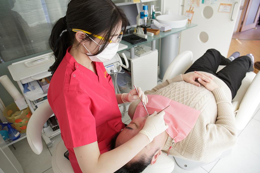 従来の歯石歯垢をとるスケーリングのみならず、PMTC(Professional Mechanical Tooth Cleaning)という方法で、歯の表面から、細菌の付いたプラークをはがし取ります。